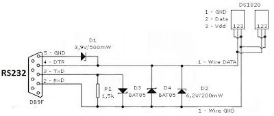 W czwartek dotarł adapter USB/RS232. Pojechałem do sklepu elektronicznego i kupiłem elementy potrzebne do zbudowania interfejsu RS232/1-wire ( Co to jest 1-wire ? ). Piątkowy późny wieczór poświęciłem na polutowanie wszystkiego w całość.